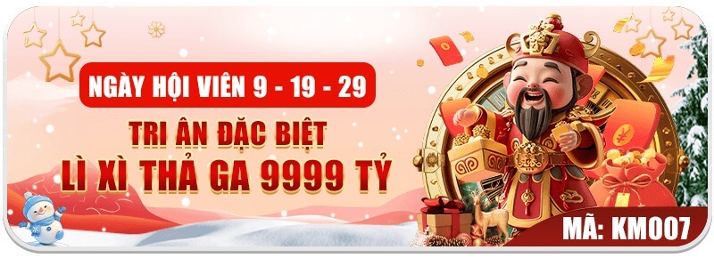 Khuyến mãi độc quyền chỉ diễn ra duy nhất tại 9rr99 và khẳng định đang là khuyến mãi độc quyền Top 1 trên thị trường cá cược Online tại Việt Nam khi phát ra 9999 tỷ ngẫu nhiên vào các ngày vàng 9-19-29.